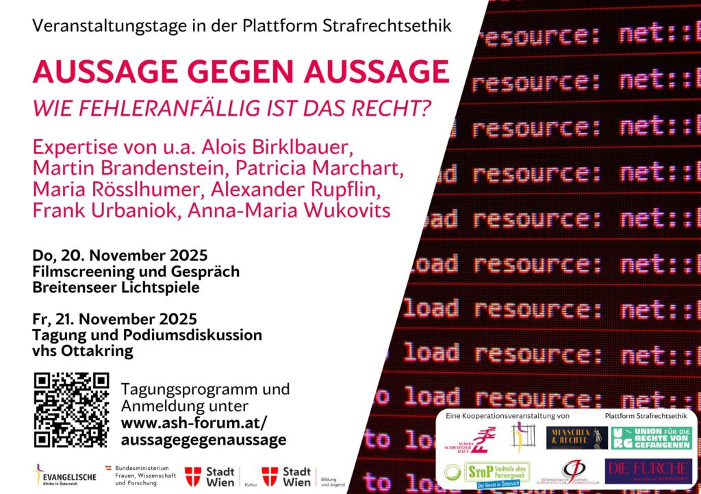 Tagung AUSSAGE gegen AUSSAGE am 20. und 21. November 2025 in Wien